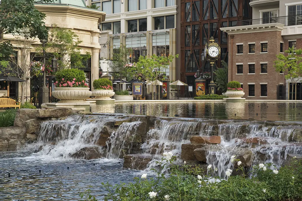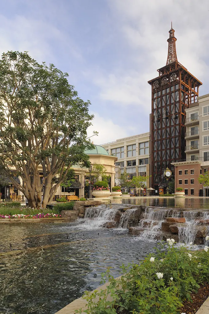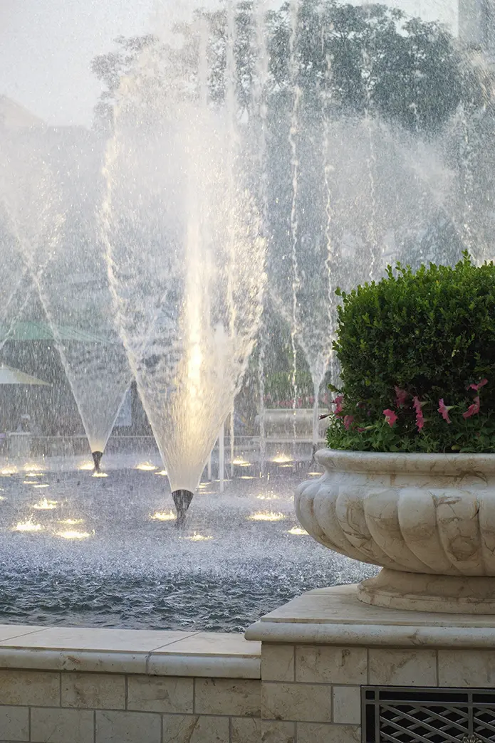 Americana spans 15.2 acres with landscape covering more than half. During installation, BrightView proved that a tedious production schedule does not compromise quality. The team installed an abundance of plant material and stunning garden features including more than 1,000 trees, 100 hanging baskets, thousands of specialty flowers and ornamental shrubs, and hundreds of specialty container plants. Select deciduous trees adding valuable color to the landscape were provided by BrightView’s Tree Company while its Specimen Division contributed significant support and specialized equipment.