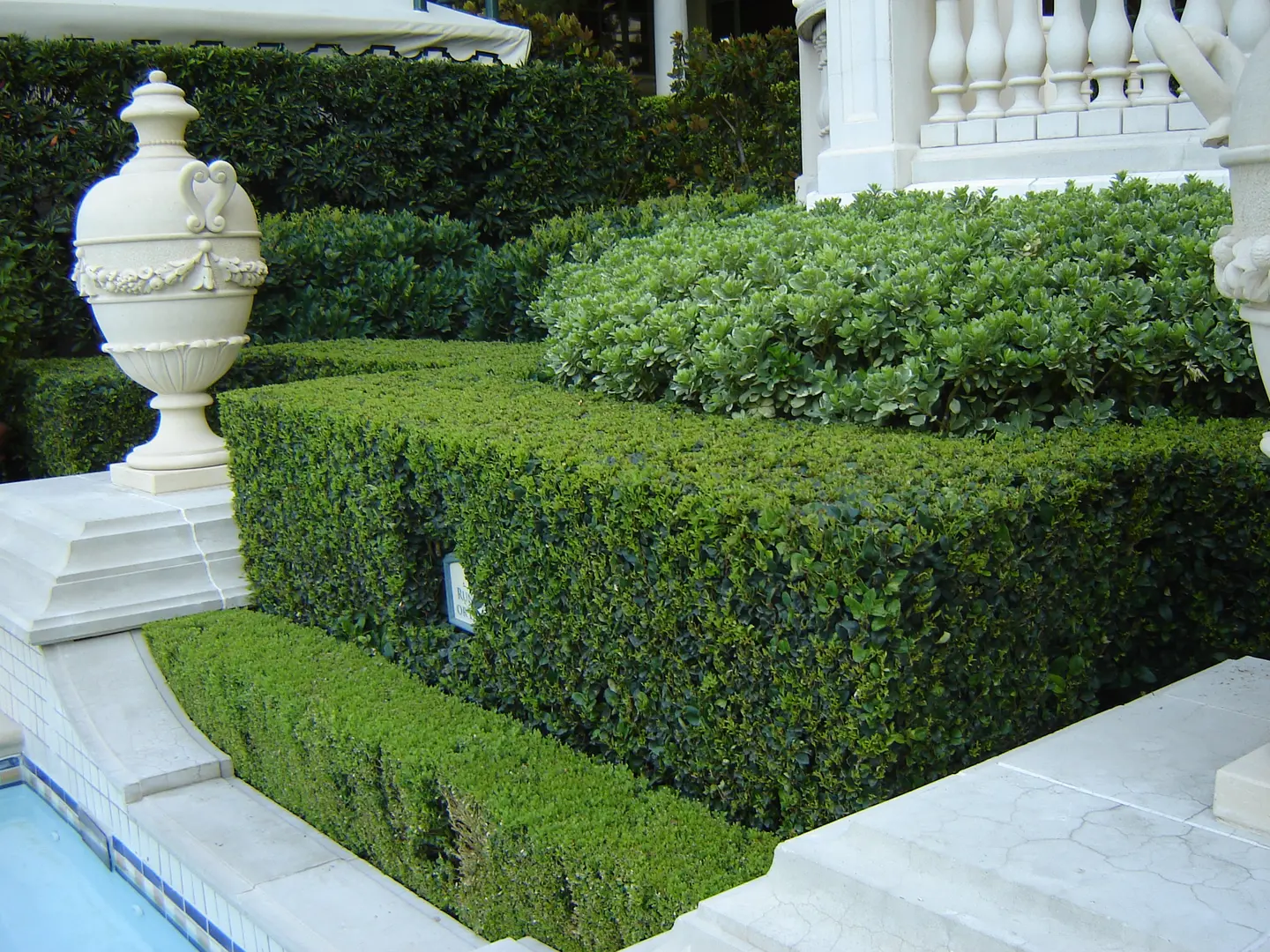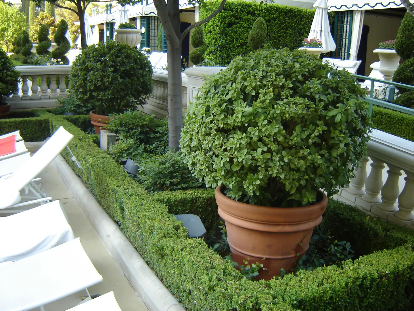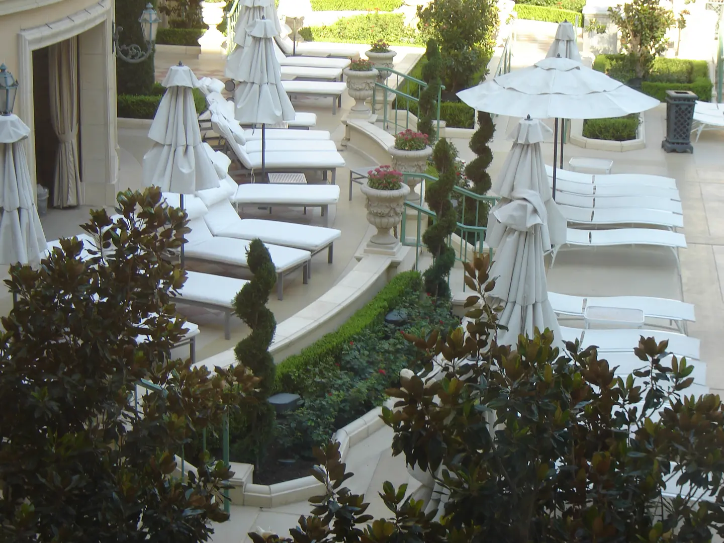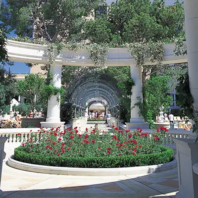 The Bellagio hotel and casino redefines luxury, providing visitors and guests with grand vistas, elegant detail, fine art, and sophisticated entertainment. The grounds of the hotel combine the best elements of both formal and rustic Italian-style garden design, from the formality of the pool area parterre gardens to the more rugged beauty of the lake's rocky shore plantings. Major specimen Pine trees for the Bellagio were salvaged from other properties. The Pinus halepensis (Aleppo Pines) were custom pruned to recreate the look of Italian Stone Pines, consistent with the theme of the hotel's architecture and guest experience.