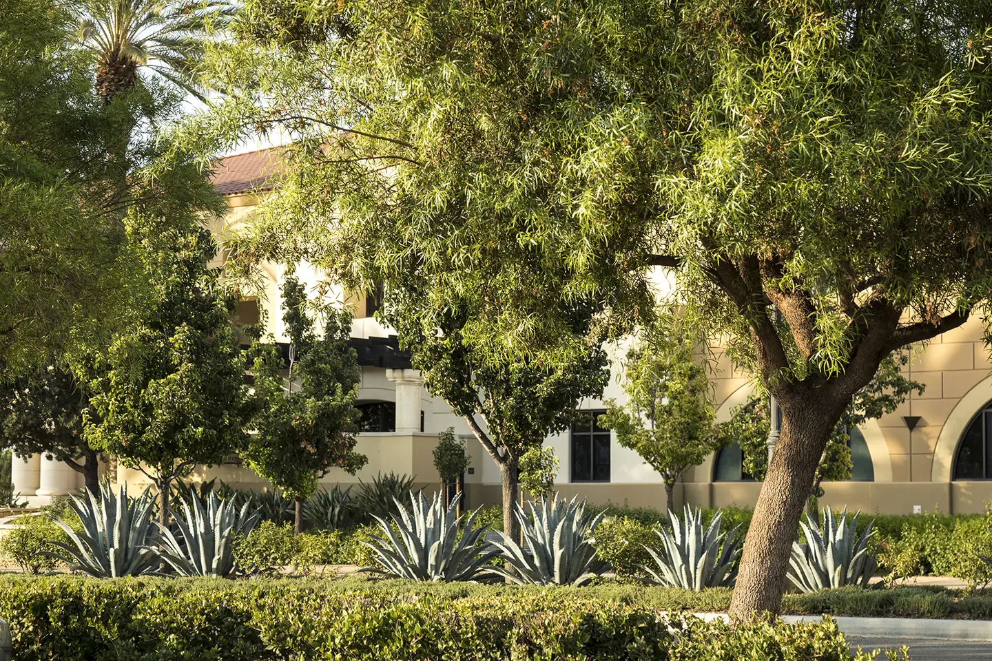 California Baptist University is a private college in Riverside, California. The university is known not only for its liberal arts education, but also its Mission Revival architecture, which was popular in the 1920s to 1930s. Some of the university’s oldest buildings were constructed during this time period, and more recent construction on-campus has followed in this style. To complement the unique architecture, the landscape features a plant palette native to the Riverside area. By using plant material acclimated to the semi-arid climate, the landscape has the added benefit of requiring less water, which supports the university’s sustainability efforts.