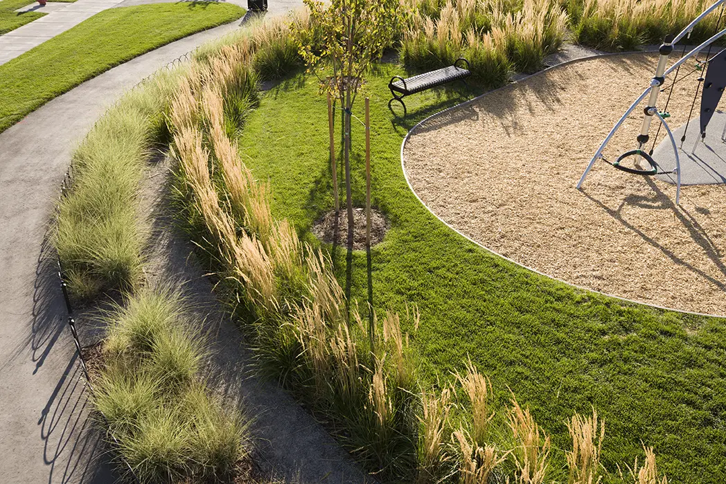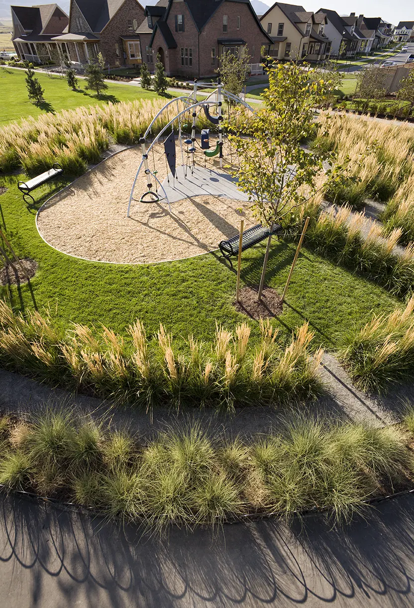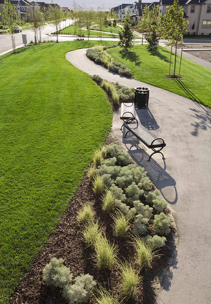 BrightView was designed by landscape architect and award-winning urban developer, Peter Calthorpe and built by BrightView. The design-build team worked directly for the developer, Kennecott Land Residential Development for this multi-phase job. This project is an example of how BrightView can enter into design-build relationships with third-party landscape architects and still deliver the benefits of the model’s delivery system.