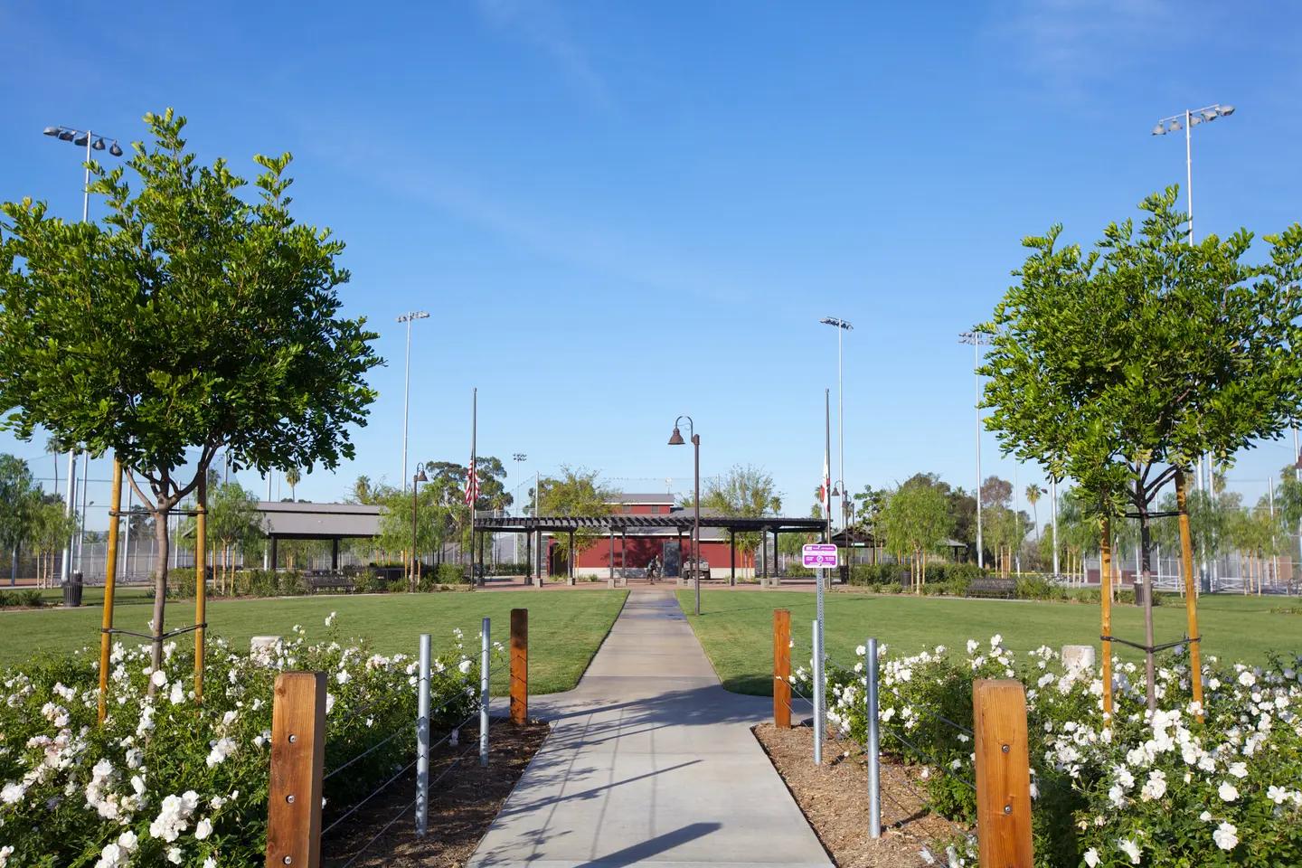 High-efficiency drip irrigation systems and state-of-the-art wastewater systems were installed in the community, all designed to apply and efficiently monitor water use. BrightView used locally-available soil amendments created from processed sewage sludge and recycled organic wood chips and green waste. The paved trails were constructed with aggregate materials crushed and screened onsite.