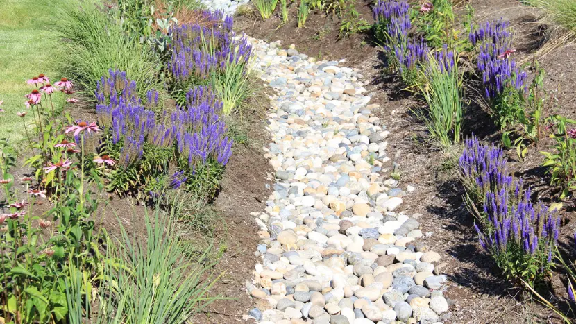 If the options above don’t fit the bill, look to nature for inspiration. Creeks and swales are just two of Mother Nature’s answers to directing runoff. Your landscape partner can incorporate these solutions by creating a man-made version for your landscape. To create a swale, your landscape partner would create a shallow drainage ditch, lined with gravel or stones, and accented with plantings that can tolerate the increased moisture. Alternatively, it can be turned into a creek bed, designed to look attractive wet or dry.