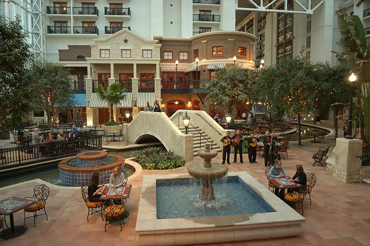 With four-and-a-half acres of gardens and winding waterways, Gaylord Texan is the premier resort in the Southwest to find entertainment and relaxation. One of Gaylord Entertainment’s fabulous resorts, guests are invited to stroll through a variety of plazas, themed garden spaces featuring the Texas Live Oak, and a large interior atrium.