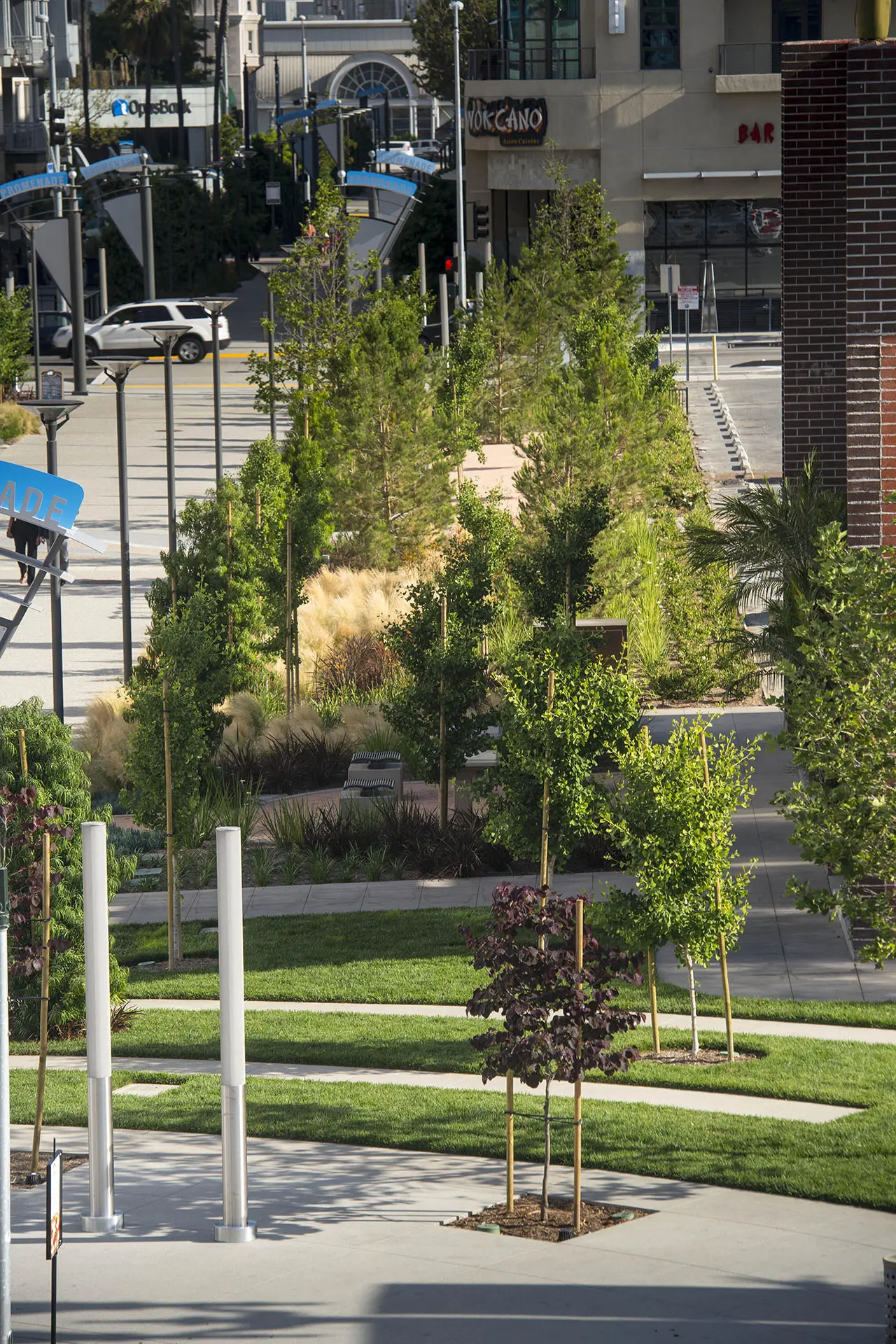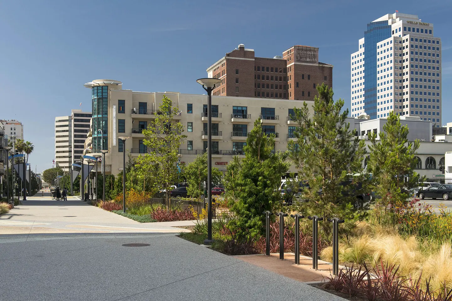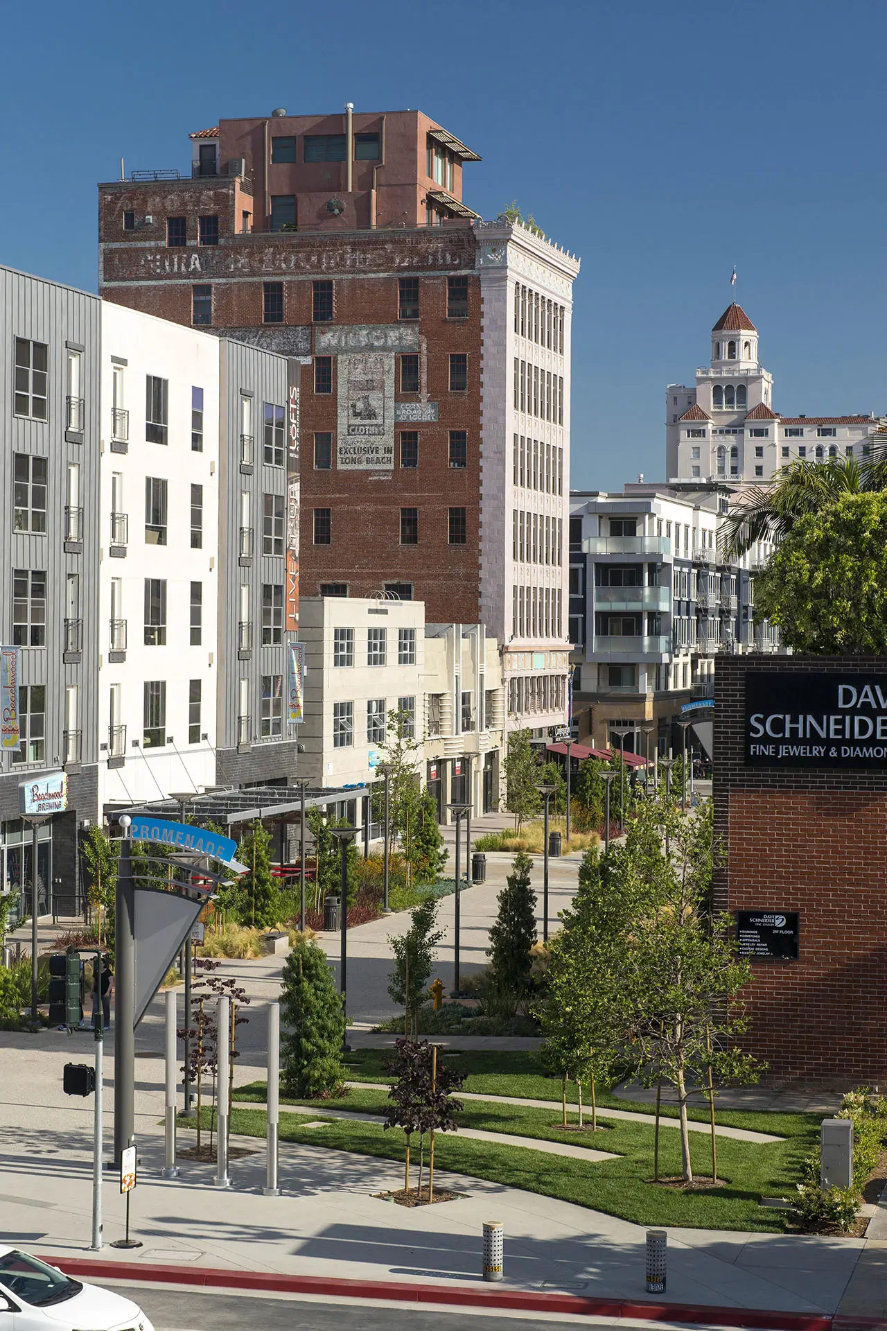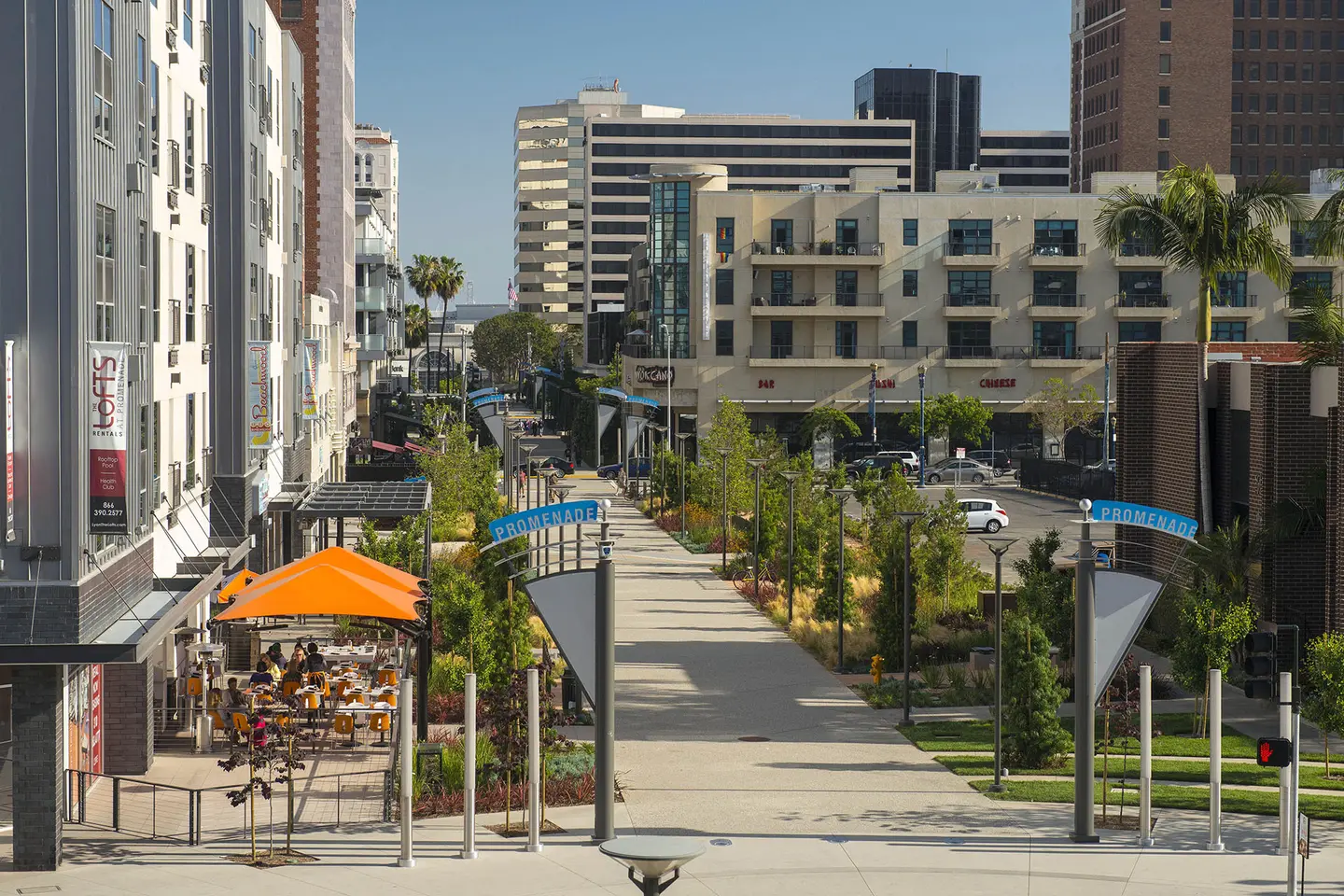 The Long Beach Promenade turned downtown Long Beach, California into a destination reflective of the city’s vibrant culture. The six block mixed-use space leads to the Long Beach Convention Center. Along the way, it features residential developments, retail, office space, and restaurants, plus green space and art. The north end of the Promenade is home to Harvey Milk Promenade Park, which is the country’s first park ever named for an LGBT leader.