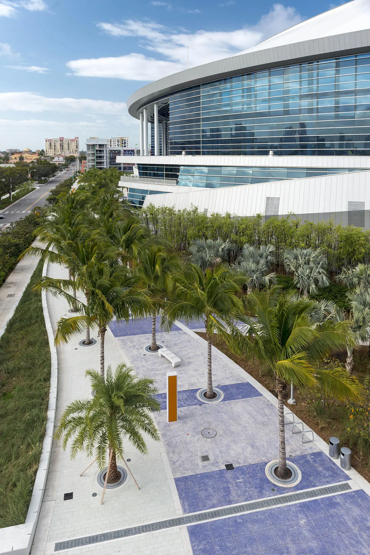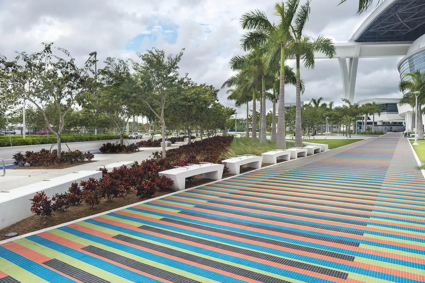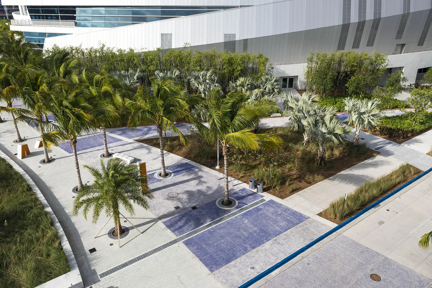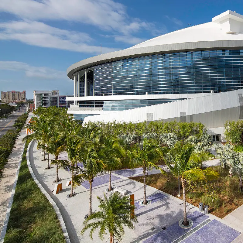 Marlins Park is not only the most sustainable ballpark in the country, it’s also the world’s first retractable-roof ballpark to receive LEED Gold certification. As the landscape contractor for the park’s construction, BrightView packed a number of environmentally features into the ballpark’s landscape. A water smart irrigation system consisting of over 18,000 linear feet of sub-drainage piping reduces water use by an estimated 52%. A native plant palette, entirely sourced from within 500-miles of the park, further reduces water use. The stadium’s colorful hardscape is another sustainable feature, featuring crushed recycled glass pavers.