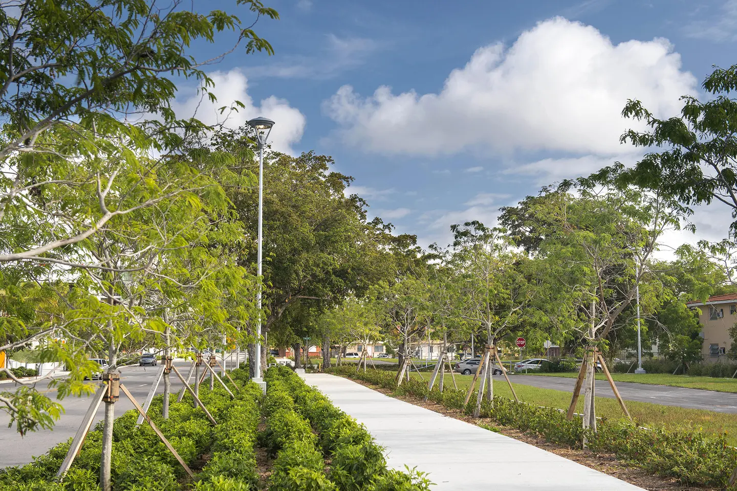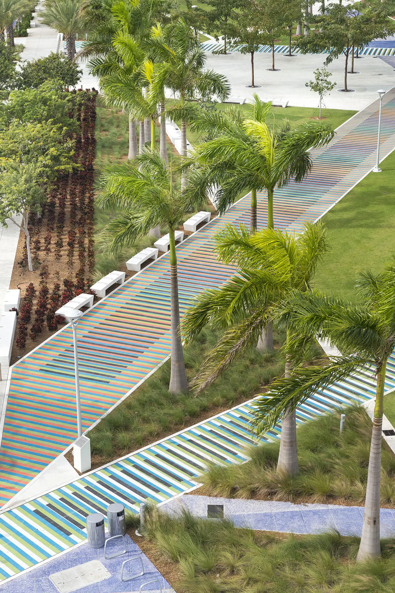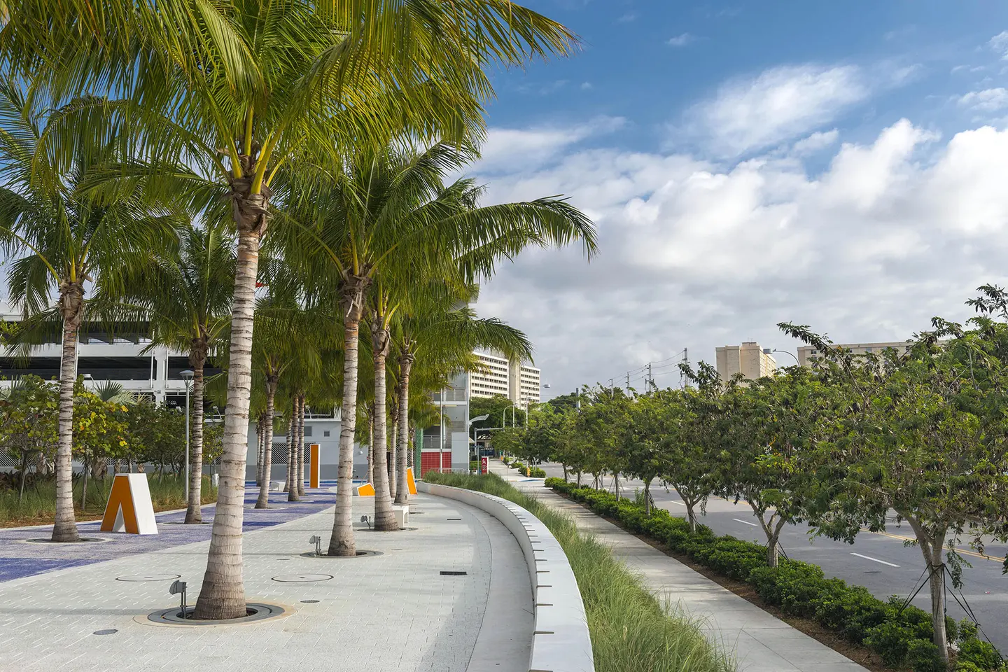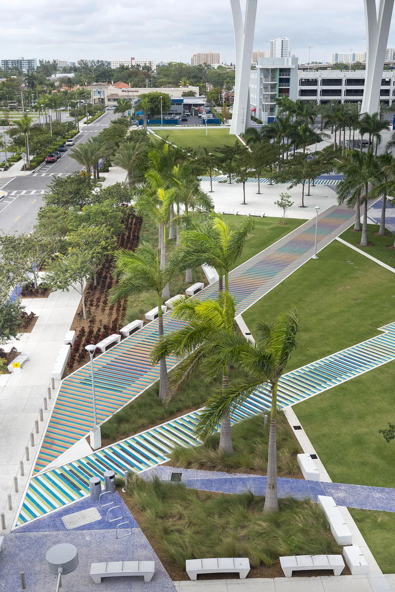Marlins Park is not only the most sustainable ballpark in the country, it’s also the world’s first retractable-roof ballpark to receive LEED Gold certification. As the landscape contractor for the park’s construction, BrightView packed a number of environmentally features into the ballpark’s landscape. A water smart irrigation system consisting of over 18,000 linear feet of sub-drainage piping reduces water use by an estimated 52%. A native plant palette, entirely sourced from within 500-miles of the park, further reduces water use. The stadium’s colorful hardscape is another sustainable feature, featuring crushed recycled glass pavers.