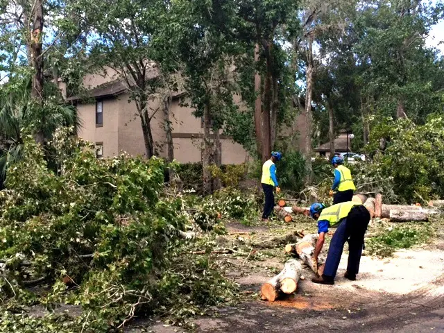 “I sent a four-man crew with a bucket truck, chipper, grapple truck, and pick-up truck to Jacksonville to assist,” he said.